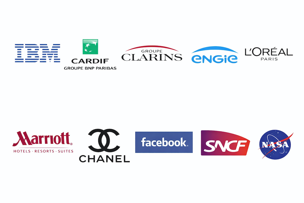 Nos solutions ont également été proposées lors d’événements et au sein de grandes organisations telles que Marriott, Chanel, SNCF, IBM, L’Oréal, Engie, BNP Paribas Cardif, Clarins et autres structures professionnelles.